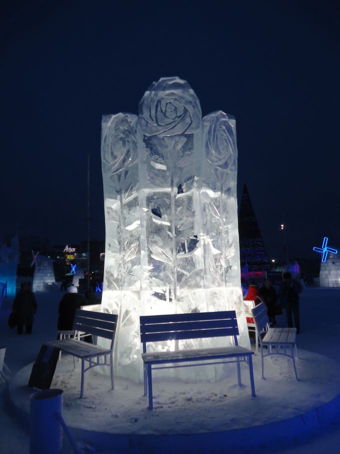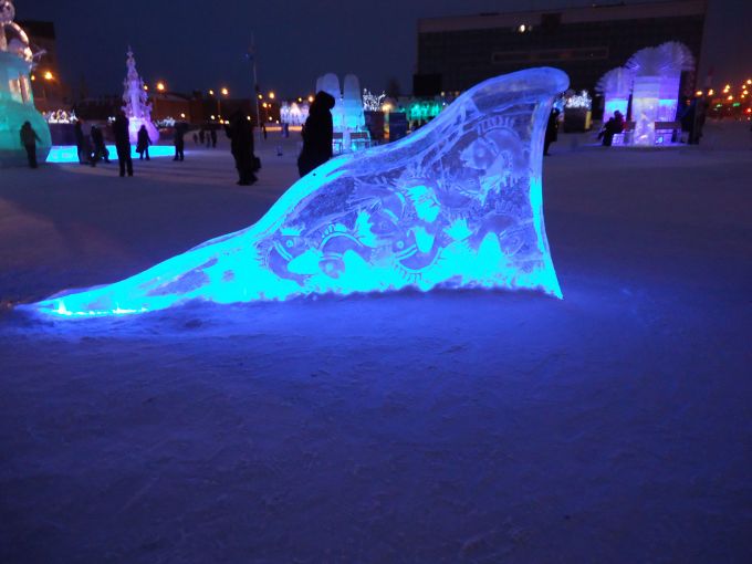 В ледяном городке было еще множество различных скульптур сделанных из льда и снега.