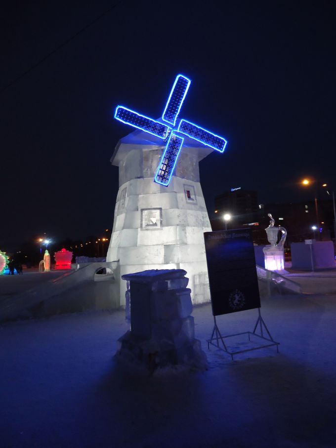 Первым в списке был "Дом грузчика". Но...я не смог устоять перед великолепнейшим ледяным городком, расположившимся возле администрации Пермского края. 2013 год объявлен годом культуры Нидерландов в России и годом российской культуры в этой стране. Этому и посвящен ледяной городок.