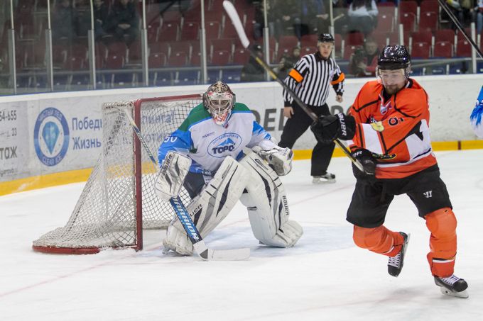 Во втором периоде сразу были видны все установки тренеров обоих команд, отданные в перерыве. Торосу защищать ворота всем умением. Ну а Ермаку играть как умеют. Вот Ермак и старался атаковать, постоянно нарываясь на жесткую и местами даже агрессивную силовую борьбу. Ермак вроде захватил инициативу, но Торос был везде. После любого отброса, отскока первый на шайбе был игрок в светлой форме. При атаке в средней линии нашего нападающего, летящего как всегда одиноко, безумно и через центр, встречали уже не меньше четверых торосовцев и встречали цепко и злобно. На воротах еще и Сохатский стоящий, как стена.