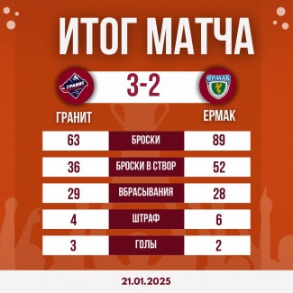 ( и это ещё не всё )Молодежный хоккейный клуб «Ермак» со счетом 2:3 уступил чеховскому «Граниту» в матче регулярного чемпионата Национальной молодежной хоккейной лиги (НМХЛ).