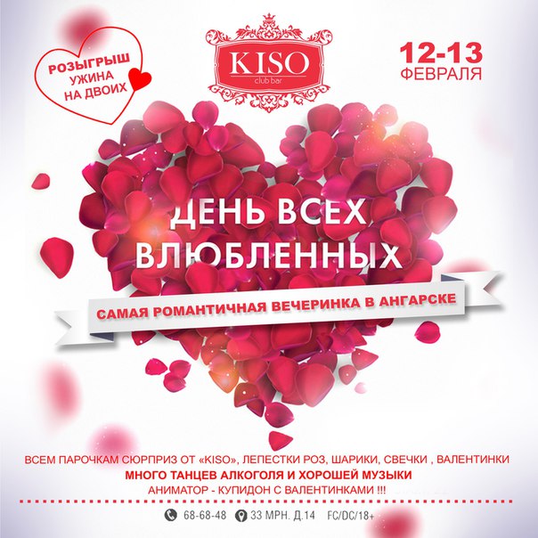 Специально для тех, кому "совсем некуда сходить в Ангарске" - новая, свежая, очень "вкусная" Афиша! В эти выходные пройдет много мероприятий, и не только на тему Дня Святого Валентина (хотя и в честь него тоже). Планируйте, отдыхайте, наслаждайтесь! И пусть никакой грипп вам не помешает.