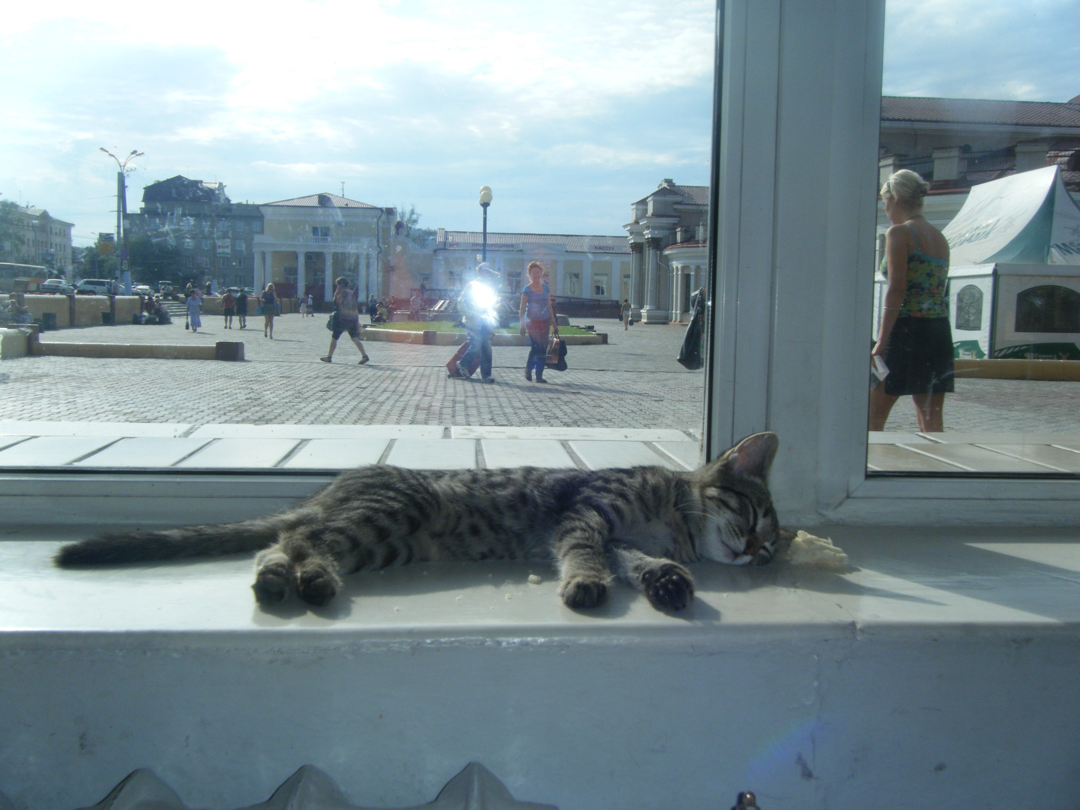 Лиса А, в Чите на вокзале в зале, где кассы котик живёт.