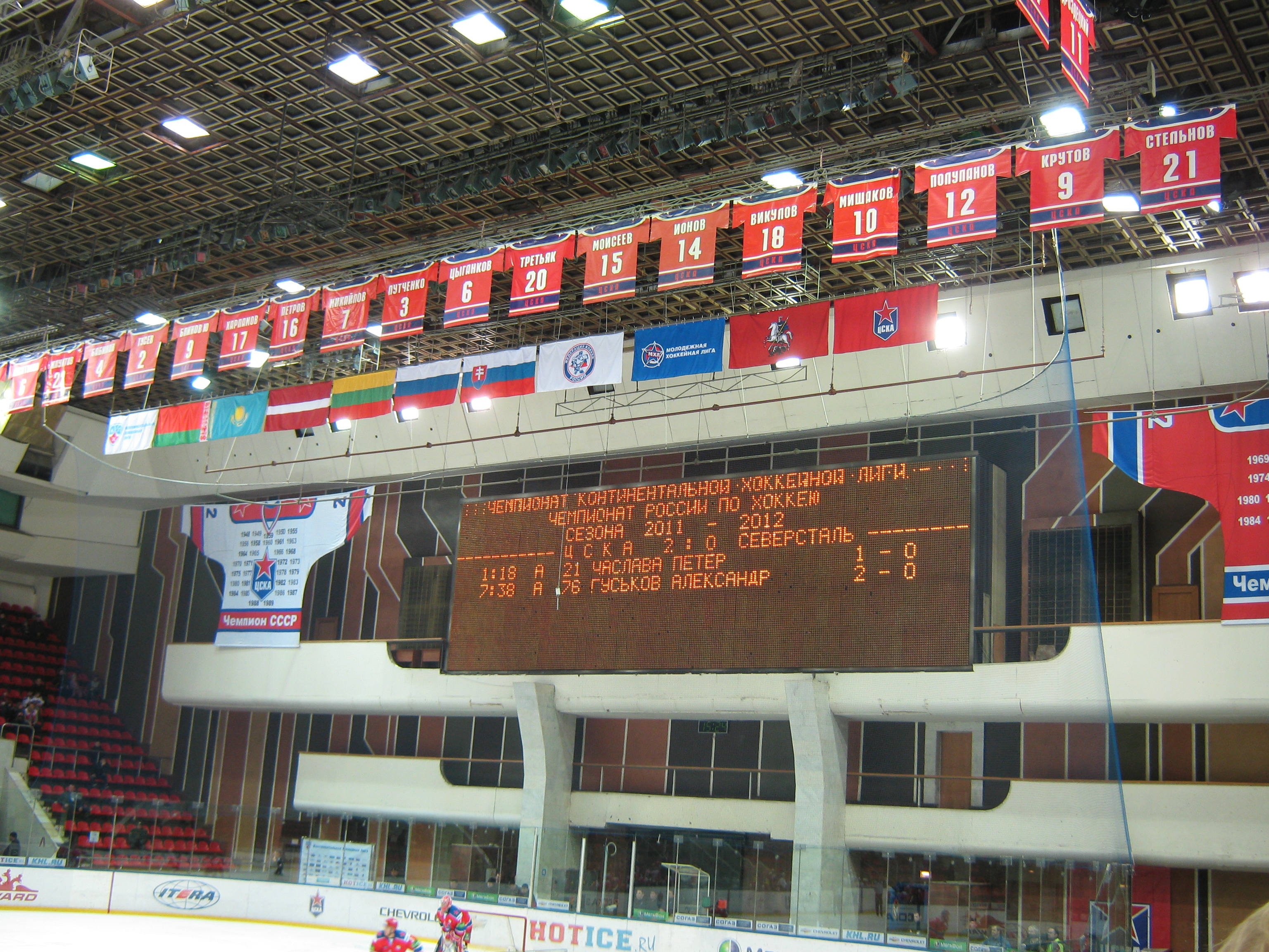 Dsc 7021Мы  это сделали! ВМЕСТЕ!!!Уверенно и напористо! (Фото: Валерий Дудуш)Не дотащилиВторой торец стадиона...Оба фан-сектора здесь. И снова свитера легенд ЦСКА.Второе табло и огромное количество свитеров легендарных игроков.А вы говорите они натуралы....Кошечкин после игры: "Ну блин...как бы...ну так получилось..."Холлы ледовой арены ЦСКА.Вип-ложа...Фетисов в центре.Разборка. Московская)