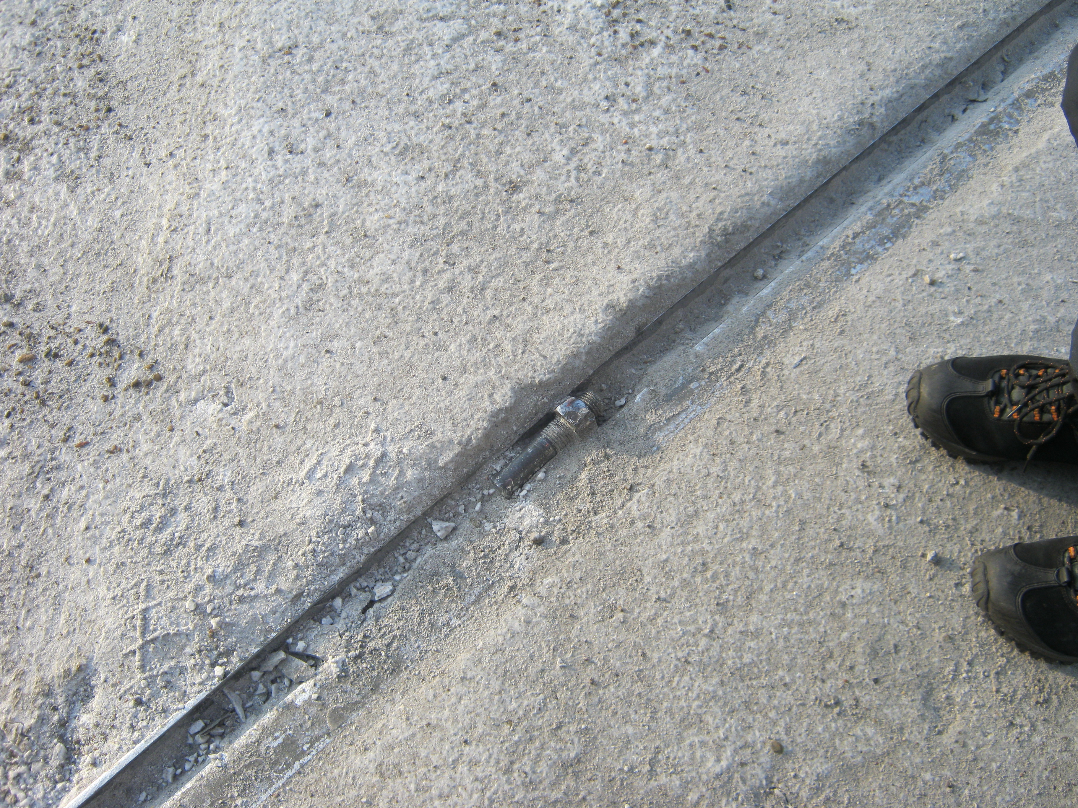 это не болт,шпилька,которую срезало либо от грузовика или от того же трамвая и "удачно" расположившуюся в рельсовом туннеле.