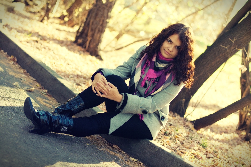 Очень красиво, но незачем девушке попой садицца на холодный бордюрный камень