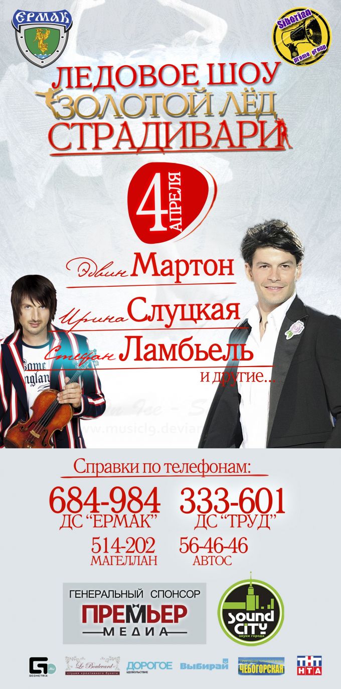 ( и это ещё не всё )Уже меньше, чем через месяц, во Дворце спорта «Ермак» состоится уникальное ледовое шоу, в котором главной героиней будет... скрипка! И если разобраться, то станет вполне очевидно, что в этом факте нет ничего удивительного. Ведь вместе с группой непревзойденных мастеров фигурного катания, чьи фамилии на слуху у всех поклонников самого красивого вида спорта на льду, приедет еще один мастер — виртуоз игры на скрипке, знаменитый венгерский композитор — Эдвин Мартон. Этот человек известен не только тем, что пишет музыку для произвольных программ чемпионов фигурного катания, а также победой в «Евровидении» в составе трио вместе с Евгением Плющенко и Димой Биланом. Победив в международном конкурсе скрипачей, он удостоился права играть на бесценном инструменте, величайшем произведении Антонио Страдивари. И эту скрипку вы услышите 4 апреля — именно на ней Эдвин будет акомпанировать двадцати шести чемпионам всего и вся в мире фигурного катания!