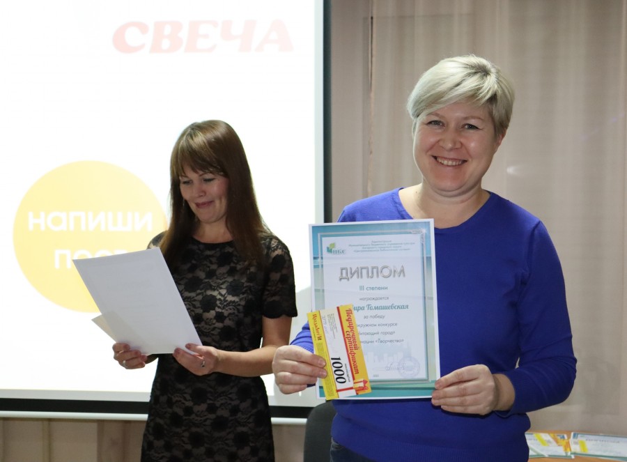 Второе место в конкурсе «Читающий город» в творческой номинации заняла Вера Модина. На третьей позиции оказалась Эльвира Томашевская.