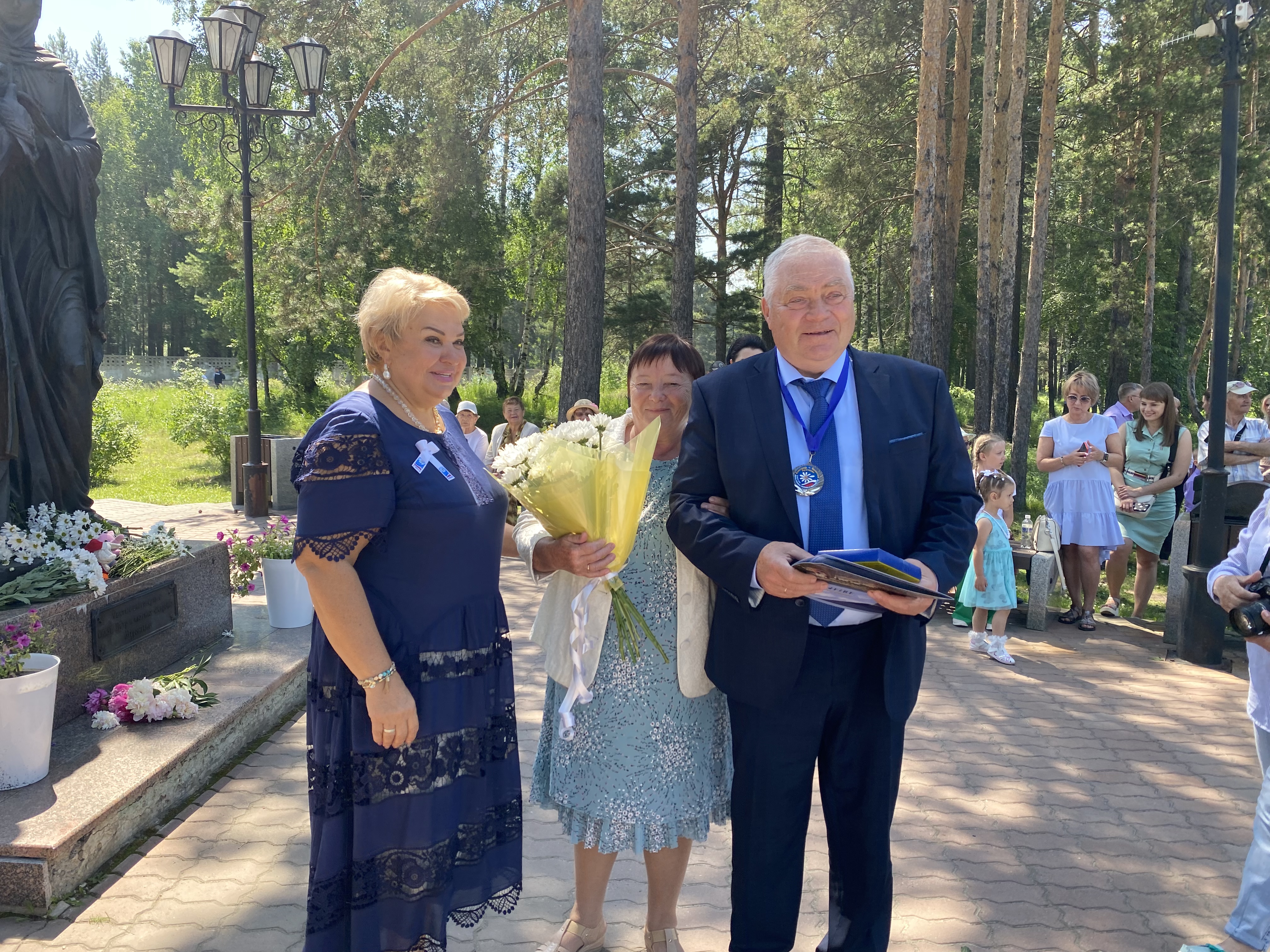 Возле памятника благоверным Петру и Февронии Муромским сегодня, 8 июля, чествовали тех, кто идет по жизни рука об руку, живет в любви и согласии много лет.