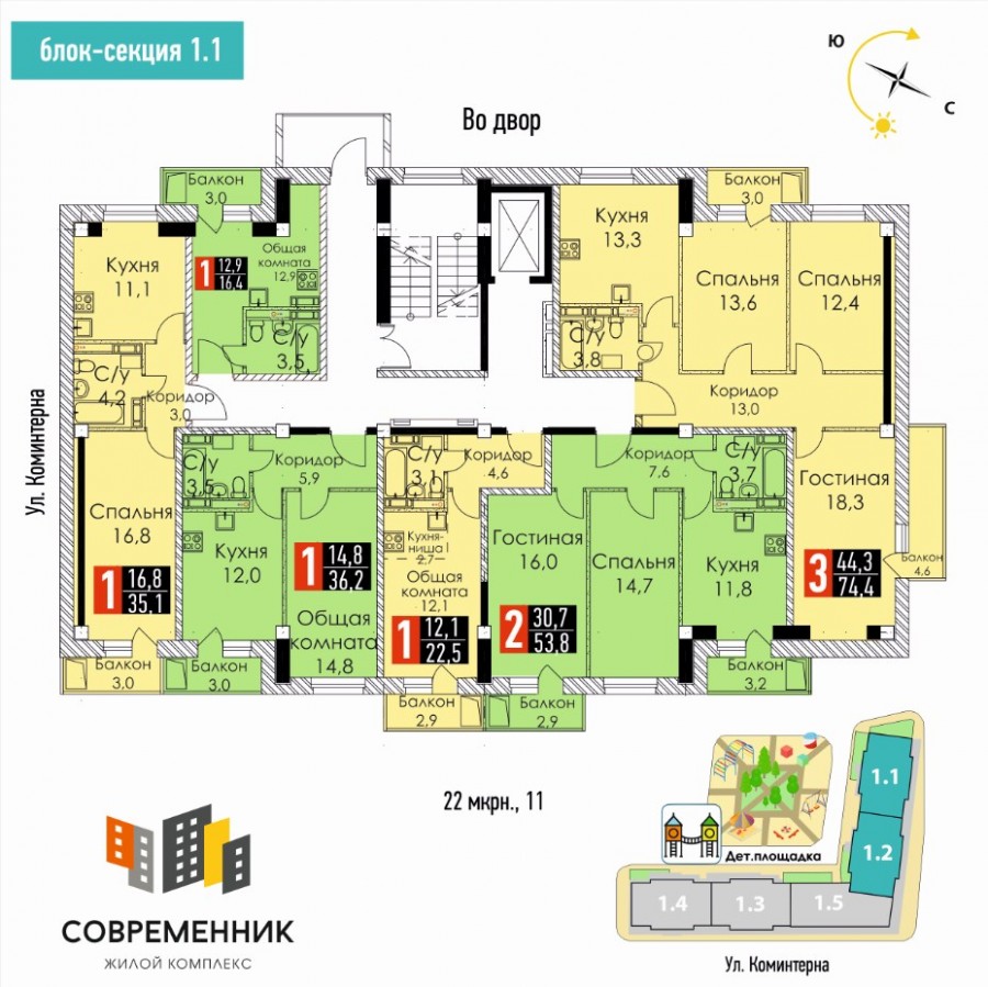 Большой выбор квартир в новом жилом комплексе «Современник»! Дом будет построен к концу 2020 года в 22 микрорайоне по улице Коминтерна. ( и это ещё не всё ) |